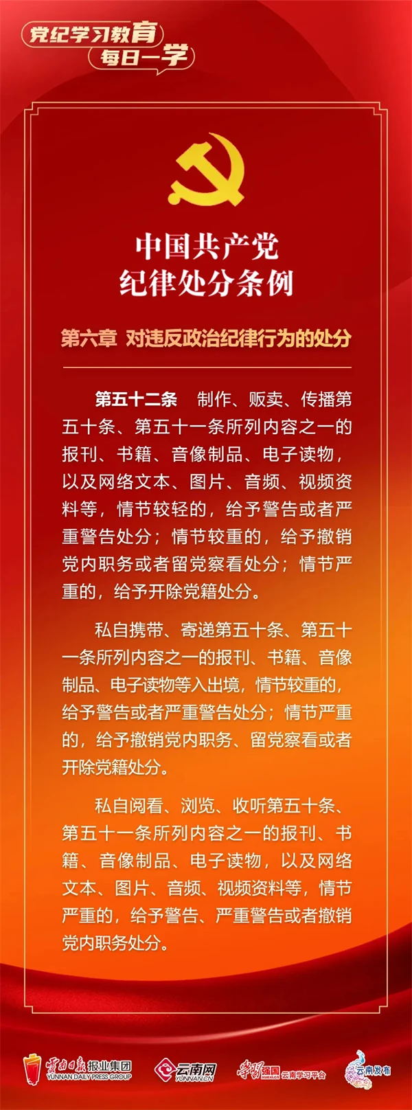 為深入學(xué)習(xí)貫徹落實(shí)習(xí)近平總書記關(guān)于黨紀(jì)學(xué)習(xí)教育的重要講話和重要指示精神,便于全省各級(jí)黨組織和廣大黨員、干部深入學(xué)習(xí)貫徹修訂后的《中國共產(chǎn)黨紀(jì)律處分條例》,云南網(wǎng)聯(lián)合“學(xué)習(xí)強(qiáng)國”云南學(xué)習(xí)平臺(tái)、云南發(fā)布共同策劃推出“黨紀(jì)學(xué)習(xí)教育•每日一學(xué)”專欄,營造全員參與、人人學(xué)紀(jì)的濃厚氛圍。今天,我們推出第?期,一起來學(xué)習(xí)。