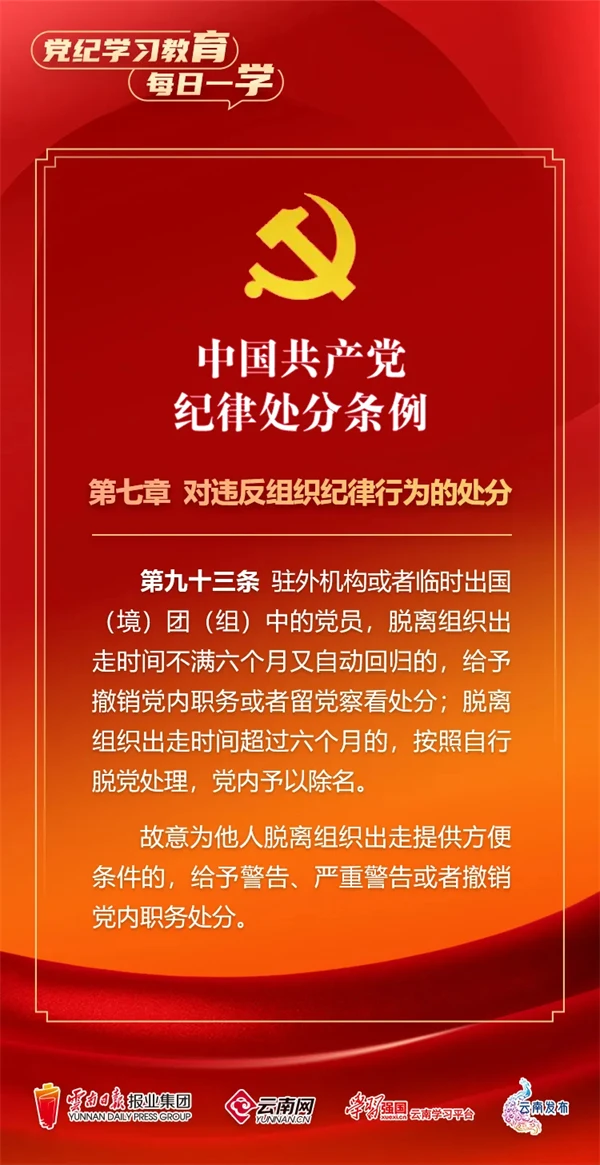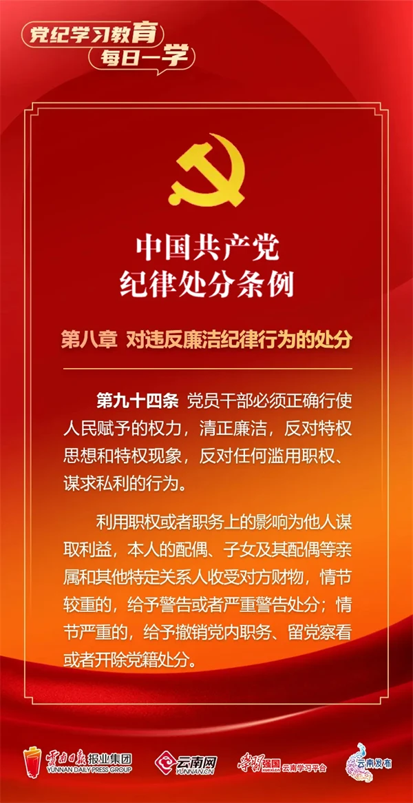 為深入學(xué)習(xí)貫徹落實(shí)習(xí)近平總書(shū)記關(guān)于黨紀(jì)學(xué)習(xí)教育的重要講話和重要指示精神,便于全省各級(jí)黨組織和廣大黨員、干部深入學(xué)習(xí)貫徹修訂后的《中國(guó)共產(chǎn)黨紀(jì)律處分條例》,云南網(wǎng)聯(lián)合“學(xué)習(xí)強(qiáng)國(guó)”云南學(xué)習(xí)平臺(tái)、云南發(fā)布共同策劃推出“黨紀(jì)學(xué)習(xí)教育•每日一學(xué)”專(zhuān)欄,營(yíng)造全員參與、人人學(xué)紀(jì)的濃厚氛圍。今天,我們推出第?期,一起來(lái)學(xué)習(xí)。