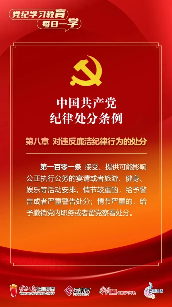 為深入學(xué)習(xí)貫徹落實(shí)習(xí)近平總書記關(guān)于黨紀(jì)學(xué)習(xí)教育的重要講話和重要指示精神,便于全省各級黨組織和廣大黨員、干部深入學(xué)習(xí)貫徹修訂后的《中國共產(chǎn)黨紀(jì)律處分條例》,云南網(wǎng)聯(lián)合“學(xué)習(xí)強(qiáng)國”云南學(xué)習(xí)平臺、云南發(fā)布共同策劃推出“黨紀(jì)學(xué)習(xí)教育•每日一學(xué)”專欄,營造全員參與、人人學(xué)紀(jì)的濃厚氛圍。今天,我們推出第?期,一起來學(xué)習(xí)。