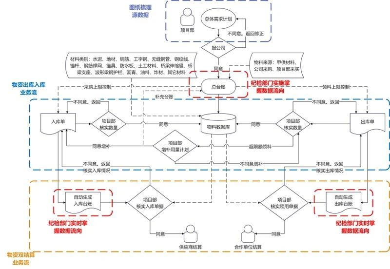 針對交通工程物資采購量大、種類繁雜、流轉(zhuǎn)環(huán)節(jié)多的特點(diǎn),公司紀(jì)檢監(jiān)察融入“物資全鏈條管理模塊”,實(shí)現(xiàn)從“申請—發(fā)貨—入庫—領(lǐng)用—清點(diǎn)”的全流程閉環(huán)管理。水泥、地材等主要建材的現(xiàn)場需求申請、供應(yīng)商溯源、發(fā)貨地、入庫時(shí)間、入庫數(shù)量、領(lǐng)用時(shí)間、領(lǐng)用數(shù)量及領(lǐng)用人等信息均實(shí)現(xiàn)全過程留痕記錄。