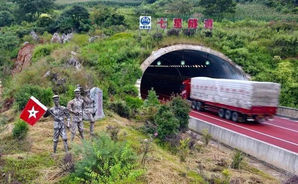 在文化根植方面,尋沾高速(昆明段)巧妙將長征精神融入路域文化肌理,以“綠色為底、紅色為魂”,紅綠交融筑根基,串起“紅色記憶”。通過隧道口、邊坡、收費大棚,打造“崢嶸歲月”“運籌丹桂”“紅色記憶”“軍民魚水”為主題的路域文化墻,通過鋁板浮雕,再現(xiàn)紅軍長征時期“前無險阻、風餐露宿、沐雨櫛風”的崢嶸歲月和紅軍長征過尋甸的線路以及事件的重要歷史場景,實現(xiàn)“路景交融、文脈相傳”。