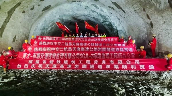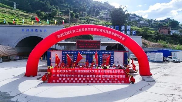 近日,隨著云南天麻高速公路重點(diǎn)控制性工程——全線最長(zhǎng)隧道巖腳隧道雙幅貫通,標(biāo)志著天麻高速所有隧道全線貫通。
